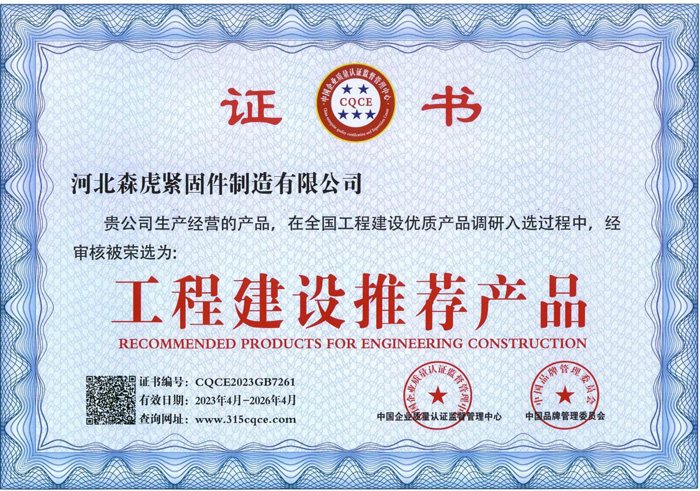 河北森虎緊固件制造有限公司成立于2011年,是建廠較早的緊固件企業(yè)。西臨京廣線,東臨京深高速,地理位置優(yōu)越,交通便利。 主要生產(chǎn):化學(xué)錨栓、機械錨栓、定型化學(xué)錨栓、高強度8.8級化學(xué)錨栓、自切底機械錨栓、車修壁虎,膨脹螺栓,植筋膠。 質(zhì)量方針:先進(jìn)技術(shù)、科學(xué)管理、優(yōu)良品質(zhì)、用戶滿意; ...